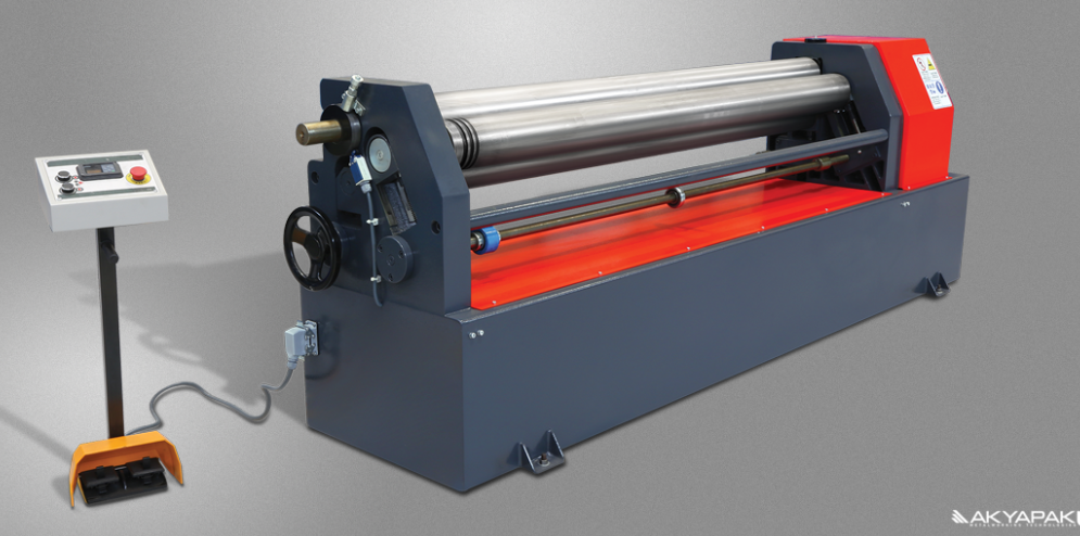 The ASM 140-12/5.0 is a robust 3-roll plate bending machine with a 4′ working width and up to 3/16″ thickness capacity. It features a cast iron frame, hardened rolls, cone bending device, and a 3 HP motor. The electrically driven top and bottom rolls ensure precise forming, while the manual adjustment of the rear roll and separate control panel with foot pedal enhance operational convenience.