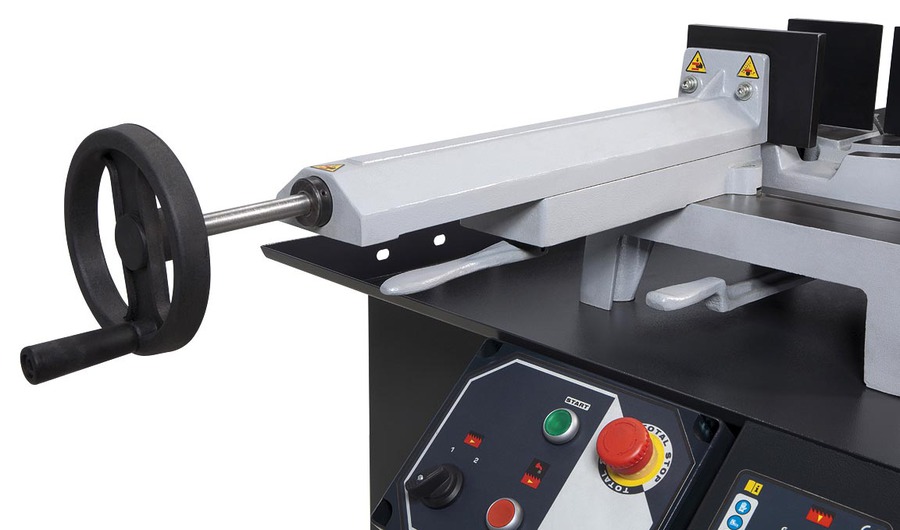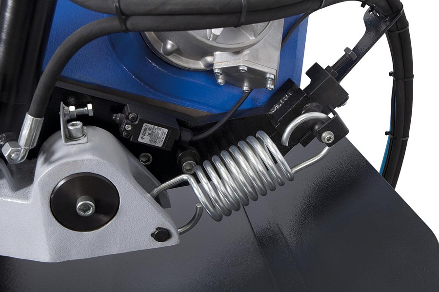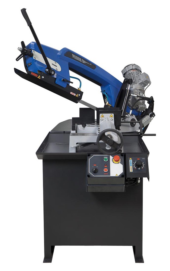 Elle est équipée d’un variateur de fréquence permettant une régulation continue de la vitesse de la lame entre 15 et 90 m/min (220V monophasé) ou 35 et 70 m/min (575V triphasé), assurant ainsi des conditions de coupe optimales pour une large gamme de matériaux.